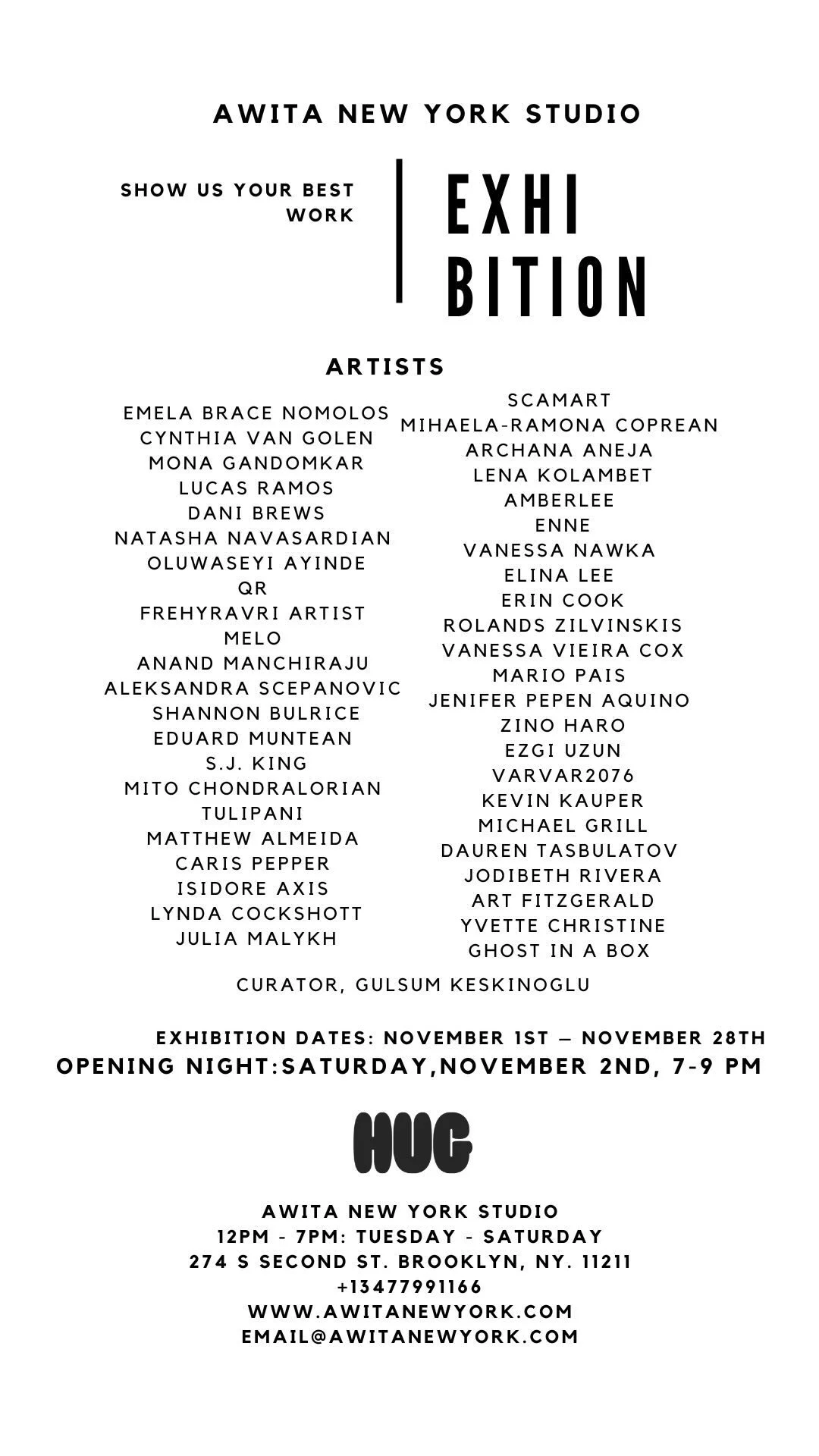 Awita New York Studio, located in Williamsburg, Brooklyn, is a gallery and creative space dedicated to empowering artists at every stage of their journey. As the foundation behind the magazine, the studio offers exhibition opportunities, networking events, and a supportive environment where artists can thrive.